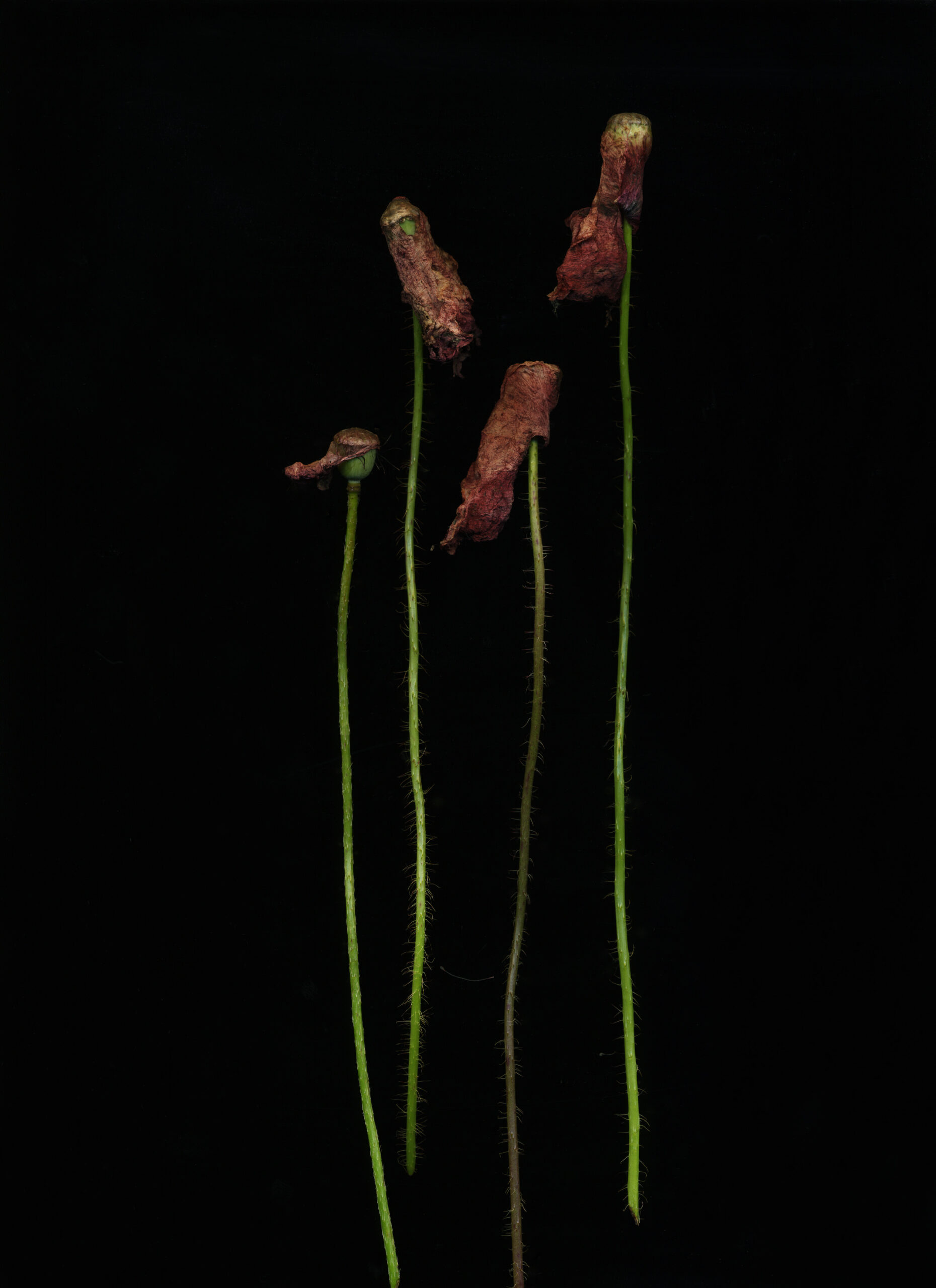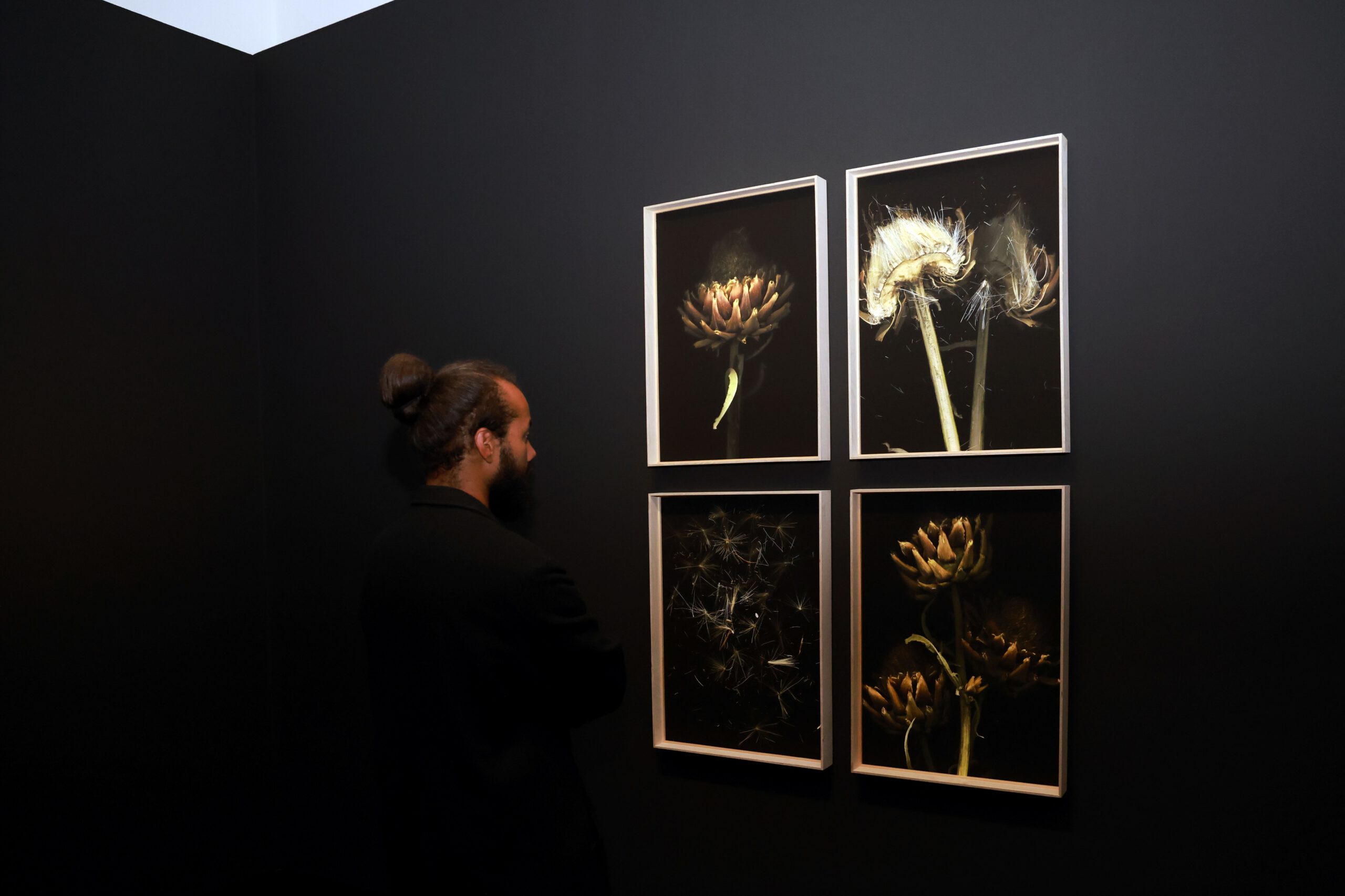 Die österreichische Fotografin Michaela Bruckmüller beforscht die Dunkelheit und die Tiefe des schwarzen Bildraums, die erst mittels Lichts greifbar wird. Aus der Unendlichkeit des Schwarzes taucht erhellt eine farbig leuchtende Pflanzen- und Tierwelt auf. Wie herausgeschnitten haben Flechten, Blüten und Wurzeln ihre wertende, kategorisierende und zeitlich begrenzte Umgebung verlassen und repräsentieren als scharf gezeichnete Protagonistinnen Lebendigkeit und Vergänglichkeit. Bruckmüllers fotografische Serien verbildlichen symbiotische Verwobenheit und Verwandlung im Moment des Übergangs und hinterfragen Themen wie Abhängigkeit, Kommunikation, Abwesenheit und Zeitlosigkeit.